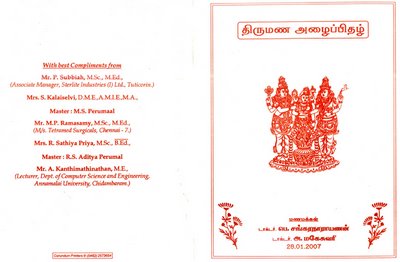 CONGRATULATIONS TO DR.SANKARA NARAYANANHE ASKED ME TO INVITE ALL OF OUR FRIENDS TO HIS MARRIAGE ON 28/01/07 AT TIRUNELVELI.THANK U